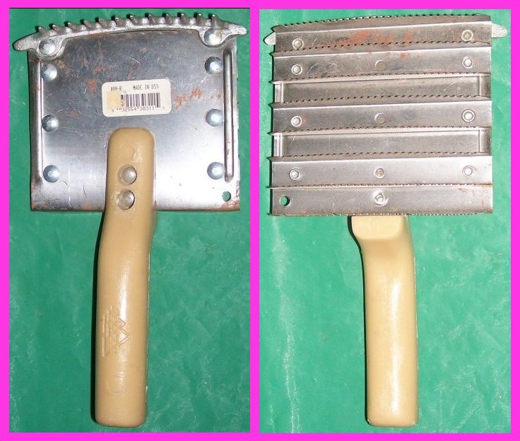 Used and works great. This rare Simonds slotted tool seems like it may have a practical use for rolling ribbon or similar material up. Someone told us it was a common tool used in conjunction with weaving looms back in the 1920s. Three other persons told us that it is a handle for a Simonds crosscut saw - a two-man crosscut saw used for felling large trees in the lumber industry - a Simond saw handle is most probably its actual original use. However, it can also be used for holding a scraping, cutting or chopping head (e.g. axe head). Or for holding or positioning a wedge. Or for aligning big nails or stakes. Or for opening or closing containers that have a rectangular head that fits into the slot. Also makes a great tool collectible. We bought it at an estate sale where the family told us it was `about 100 years old.' We are collecting rare, weird and old tools for decades now. We have never run into another tool like this one. Slot is 3-1/2" long and 3/16" wide with an adjustable washer. It has seen a lot of use, and its surface finish is rough. A nice collectible or integrated into a crafts project.